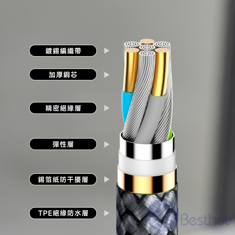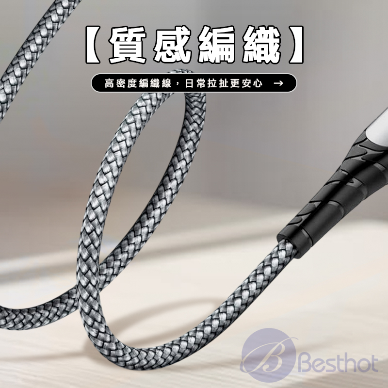✔️高密度編織外層 — 採用耐磨編織線材設計,有效防拉扯、防纏繞,延長使用壽命。