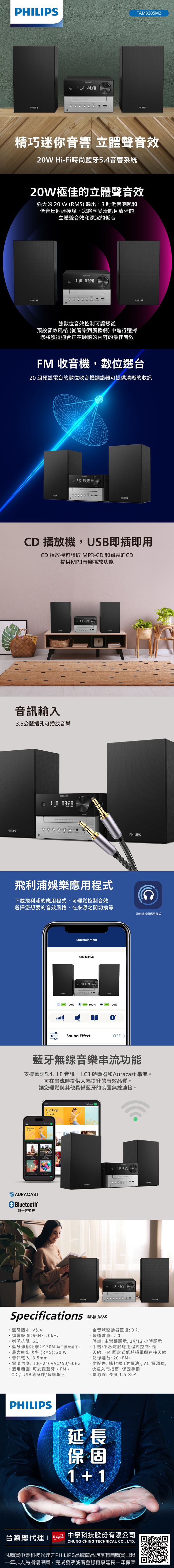 PHILIPS 20W Hi-Fi Stylish Bluetooth 5.4 Speaker System - TAM3205M2