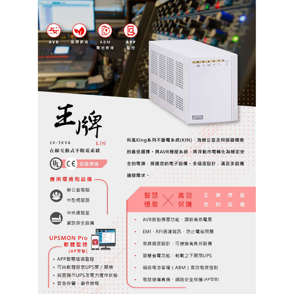 昌運監視器 科風PCM KIN-3000AP 110V 1K-3KVA 在線互動式UPS不斷電系統