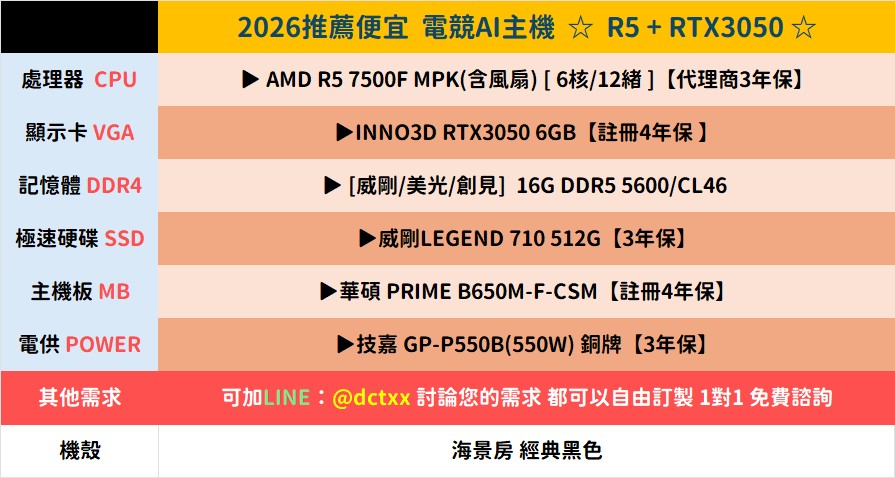 **備註: 因電腦零件汰換很快 會根據情況因缺貨或時關係有可能 更換/升級 同等價值不同廠牌零件