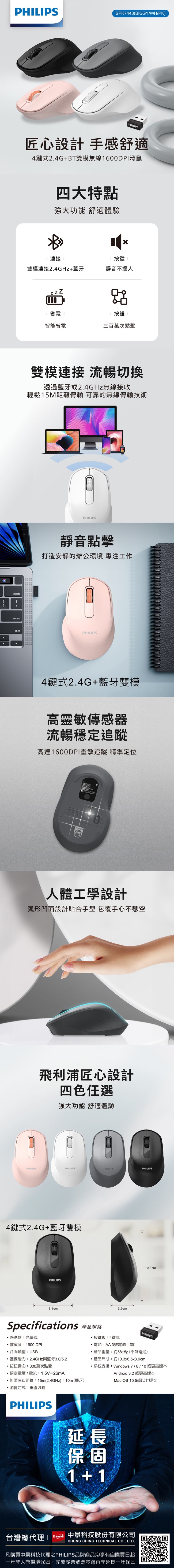 PHILIPS Bluetooth and 2.4GHz Wireless Mouse-SPK7448PK