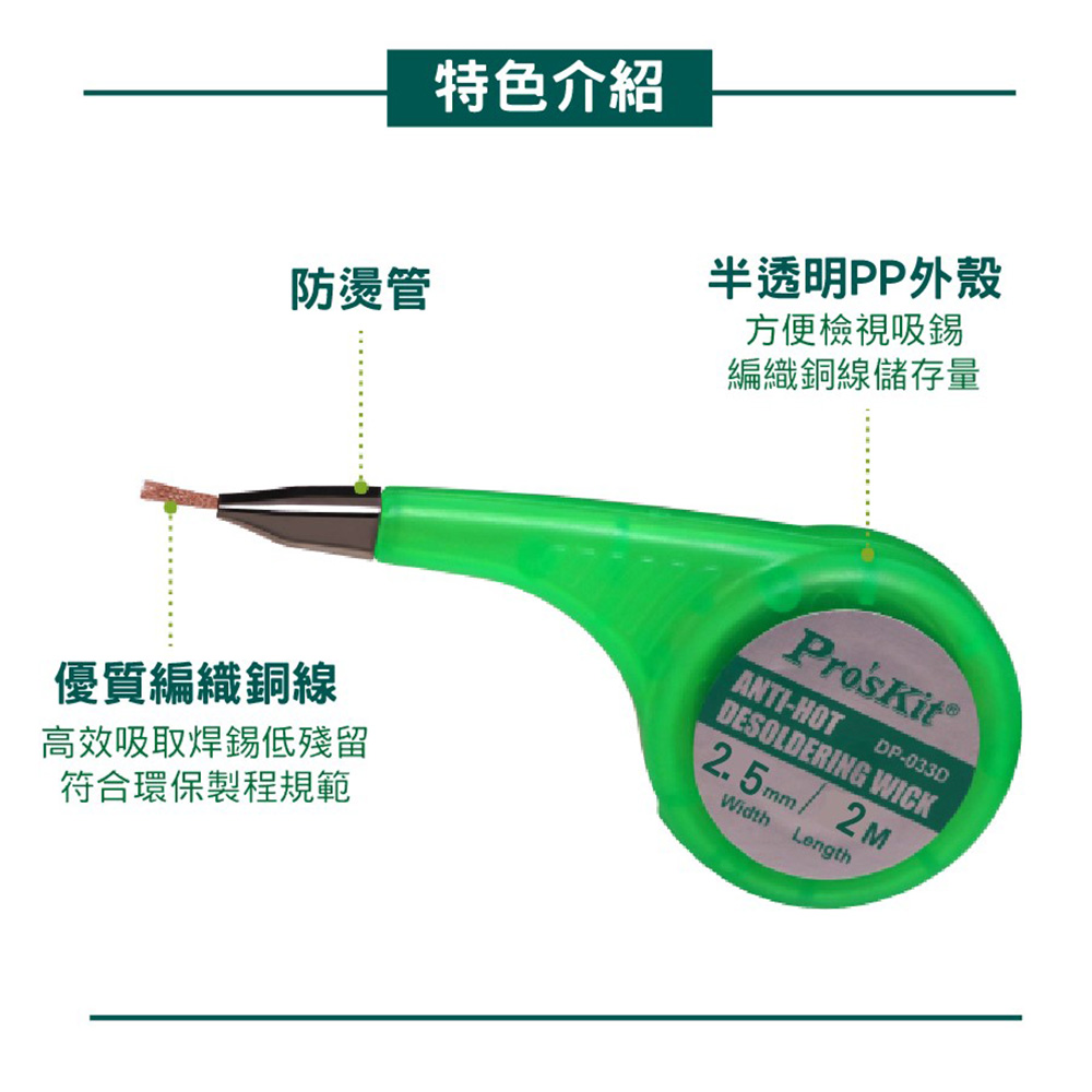 【商品名稱】寶工Pro`sKit 防燙吸錫線