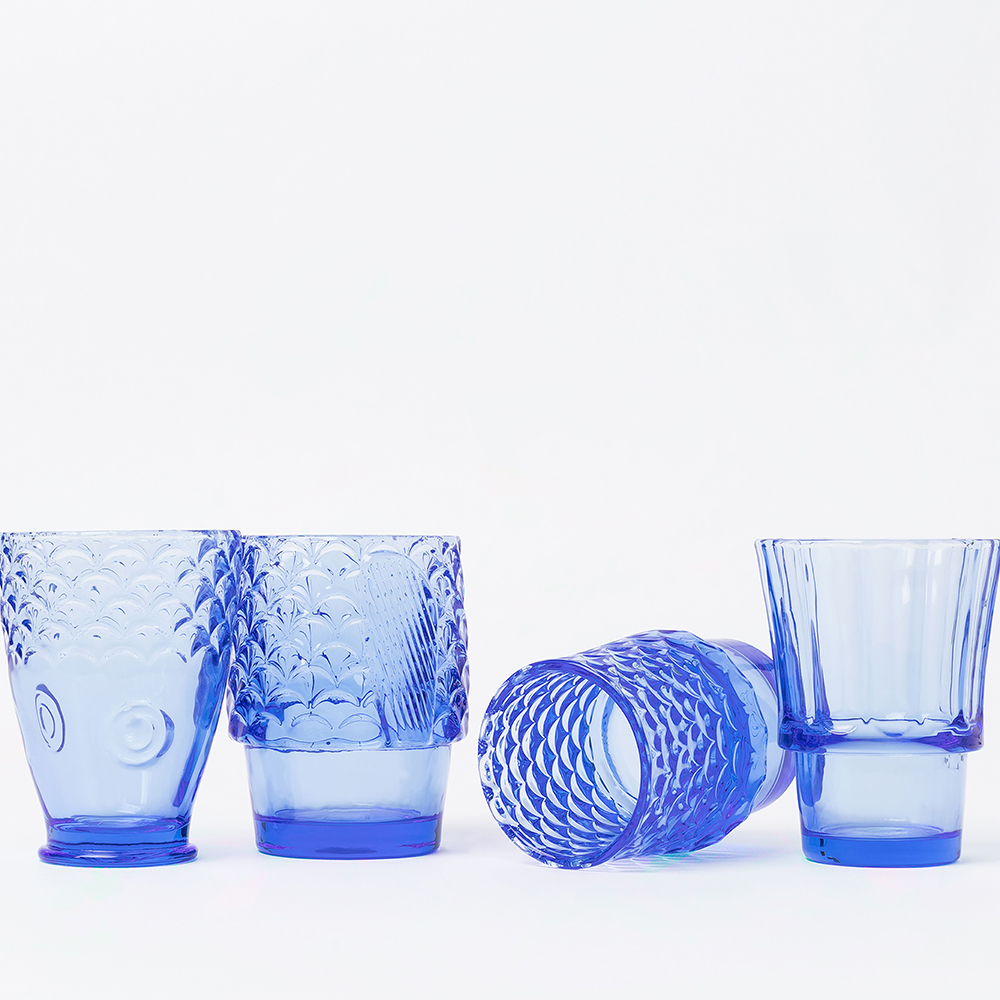 一組四入,堆疊起來不但省空間又可點綴居家空間材質: 玻璃顏色: 藍尺寸: 8.3*8.3*32.5公分包裝: 紙盒注意事項: 可放入洗碗機使用。微波爐則因各家廠牌增溫程度不同,使用時請務必留意溫差,短時間溫差避免大於50ºC,若不確定微波爐升溫速度,建議勿嘗試。勿使用電鍋加熱。