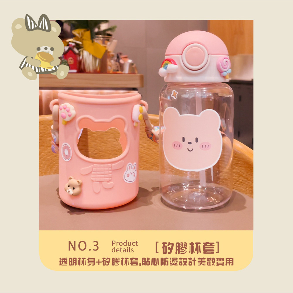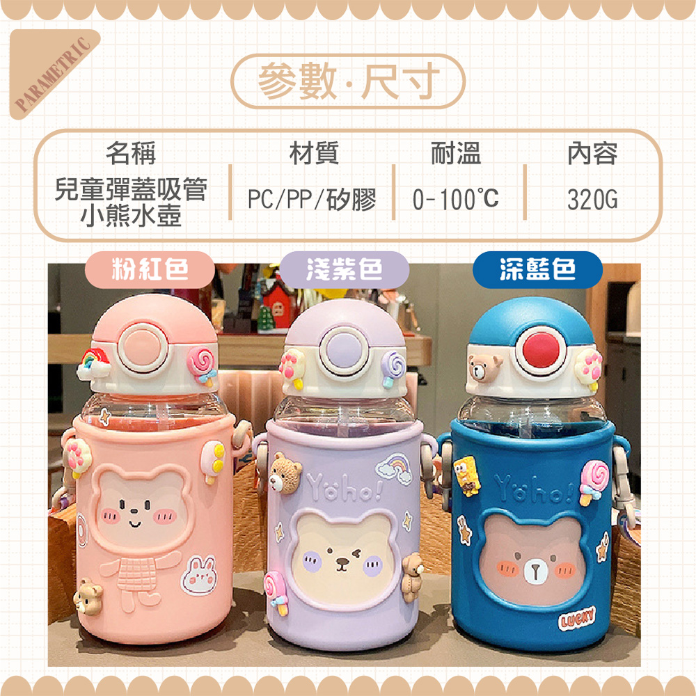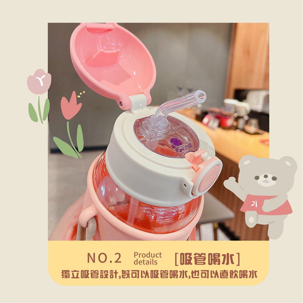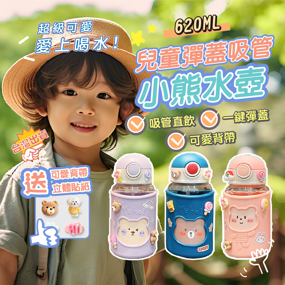 .可愛小熊造型設計,讓孩子愛不釋手,隨時補充水分,保持健康活力每一天.彈蓋式吸管設計,單手輕鬆開啟,方便孩子飲用,避免溢漏,外出攜帶更安心.620ml容量適中,滿足孩子日常飲水需求,輕巧瓶身,方便孩子隨身攜帶,隨時補充水分