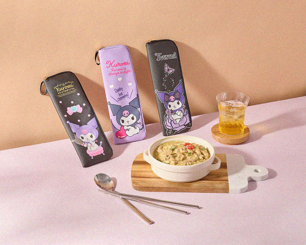 SANRIO - Hello Kitty Simple Cutlery Set - Black Heart Design (Two Pieces)