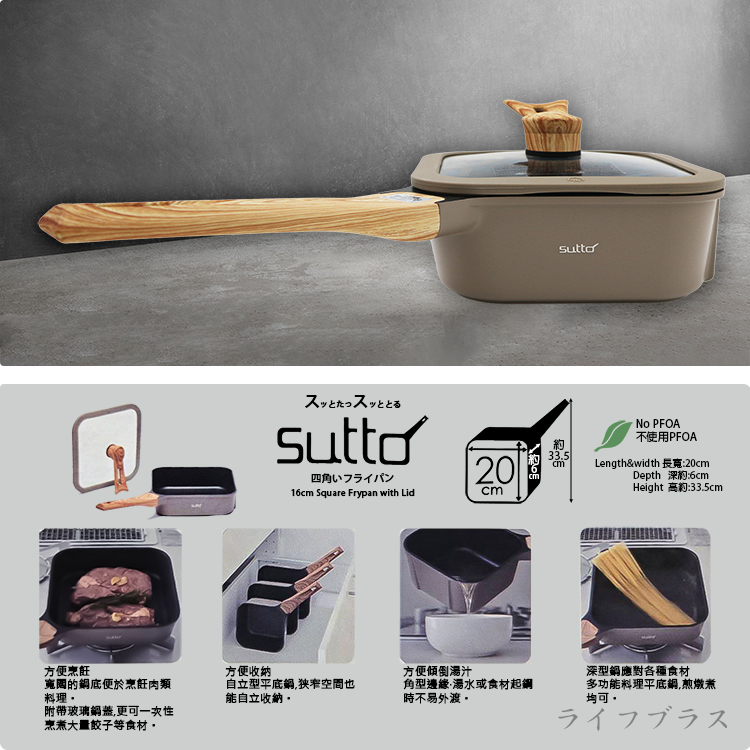 在廚房中,擁有一款優質的鍋具是烹飪成功的關鍵,採用不沾塗層處理,達到不沾鍋身抗黏OK,不易粘黏食材,煎煮食材只需少許油 ,省油,省瓦斯,方形四角平底加深設計,方便收納,料理食物好鍋具,專為現代廚房設計,讓您輕鬆掌控每一道料理,仿原木握柄,握感極佳好拿好握不燙手,IH電磁爐對應,瓦斯爐、電磁爐、電爐、陶瓷爐、鹵素爐通通適用。