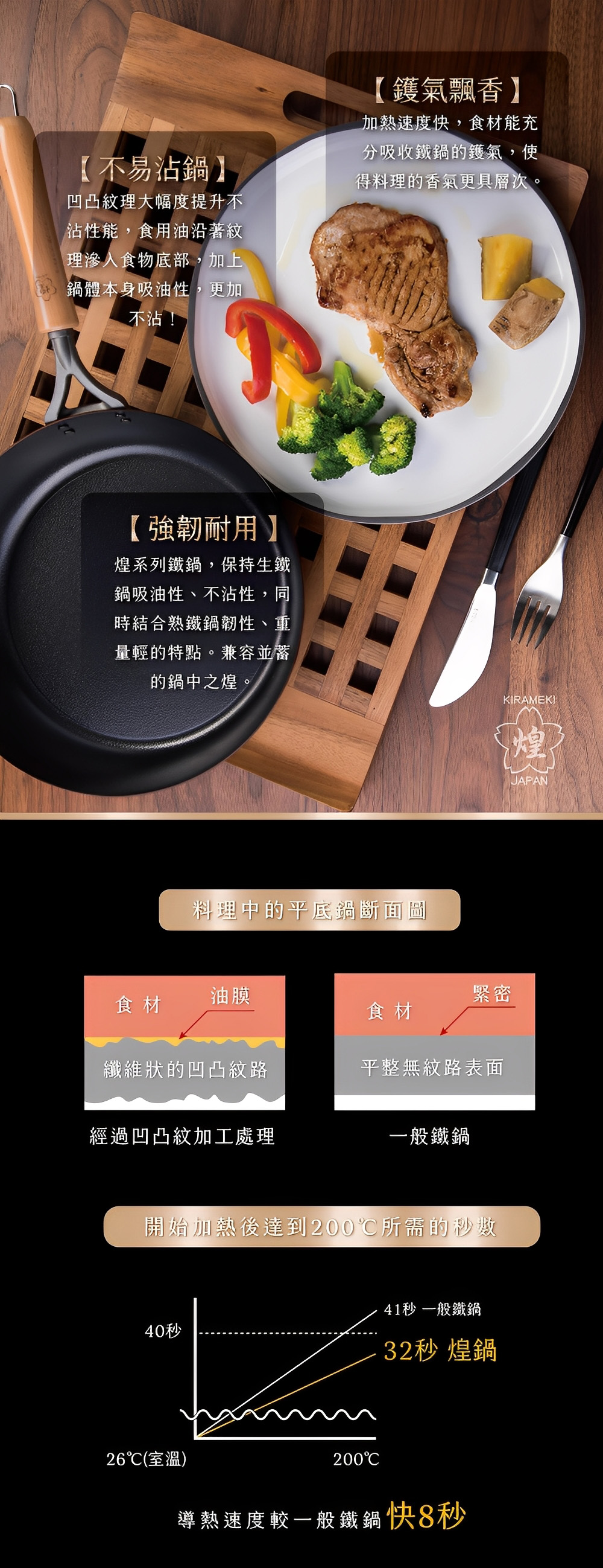 .導熱快速、鎖住美味、不易沾鍋