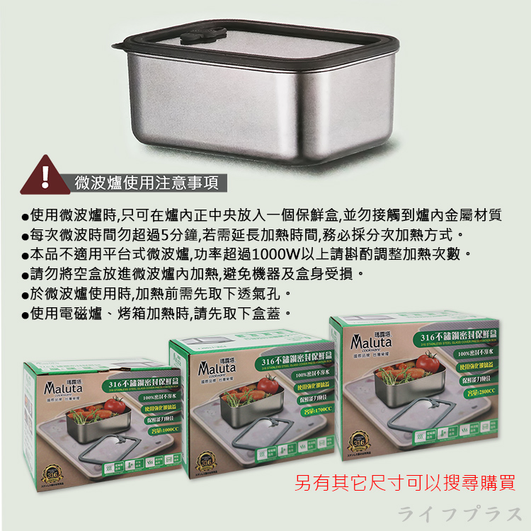 採用316不鏽鋼材質,附強化玻璃蓋密封密合度佳,不鏽鋼容器遇熱不易變形,冰箱保鮮儲藏,堆疊收納存放,節省冰箱空間,多用途使用,室內、外出用餐、學校、露營皆可使用,適用烤箱、微波爐、電磁爐都OK,重覆使用環保保鮮,減少使用保鮮膜。