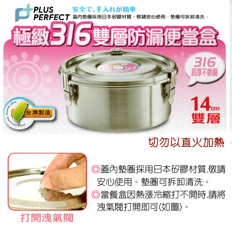 臺灣製造品質安心,採用#316超厚高級不銹鋼,採用日本矽膠材質,矽膠圈可拆卸清洗,餐盒傾斜,湯汁不外漏,通過SGS檢驗合格,堅固耐用容易清洗,安全設計扣環,開啟方便, 適合學生及上班族攜帶使用,雙層設計可飯菜分離,美味料理輕鬆帶出門,衛生又實用。
