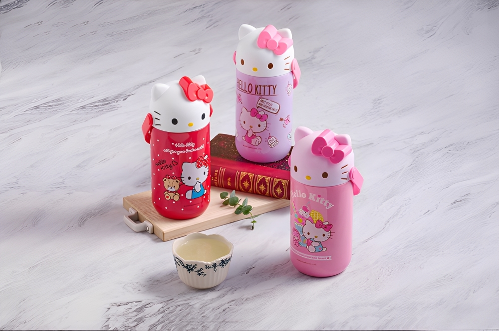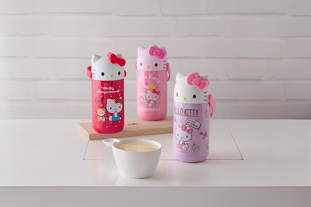 內容物: Hello Kitty 造型真空食物燜燒罐x1、不鏽鋼折疊湯匙x1
