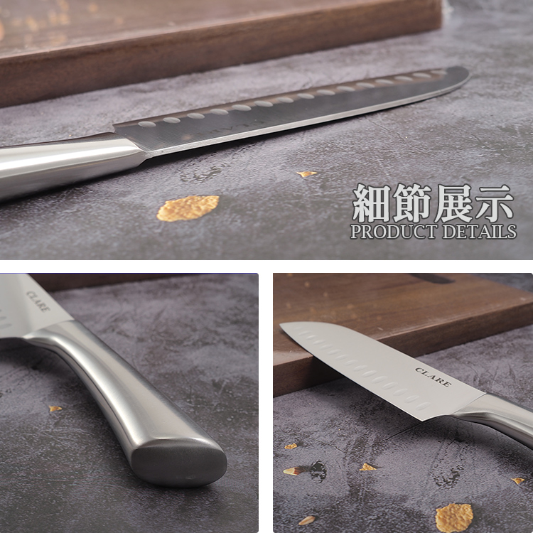 時尚刀具工藝技術,採用特殊合金不鏽鋼材質,比一般菜刀鋼料更佳,更加鋒利,鋒利好切值得使用,廚房好幫手,適用肉類、蔬果等食材切片,皆可使用,輕巧不笨重,使用壽命更長。