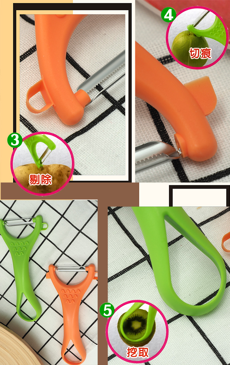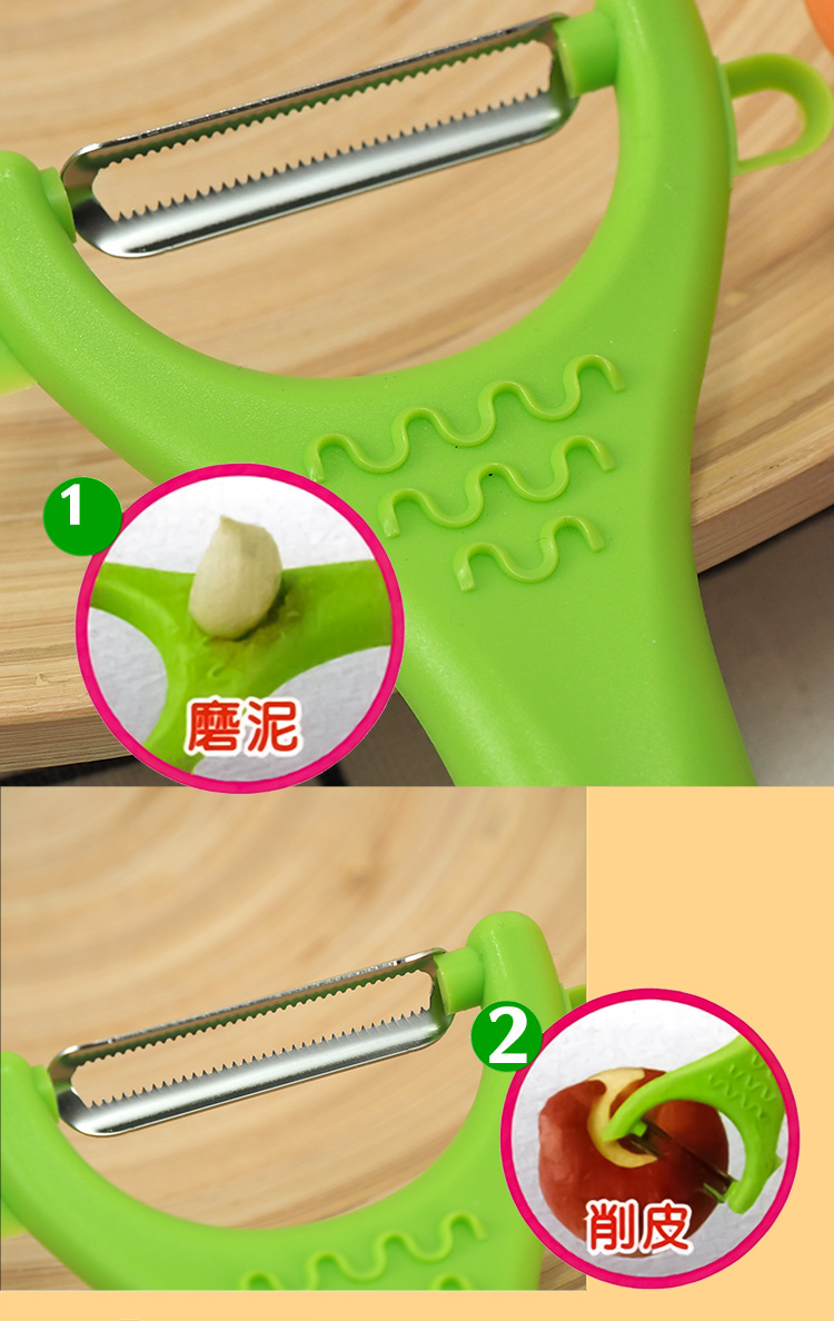 台灣製造使用安心,多用途使用,1.削皮 2.切痕 3.剔蒂 4.挖籽 5.磨泥,比一般市售削皮刀更加鋒利好削,不鏽鋼刀片,在家削水果鋒利好削,使用完畢易於清洗,使用壽命長,廚房好幫手。