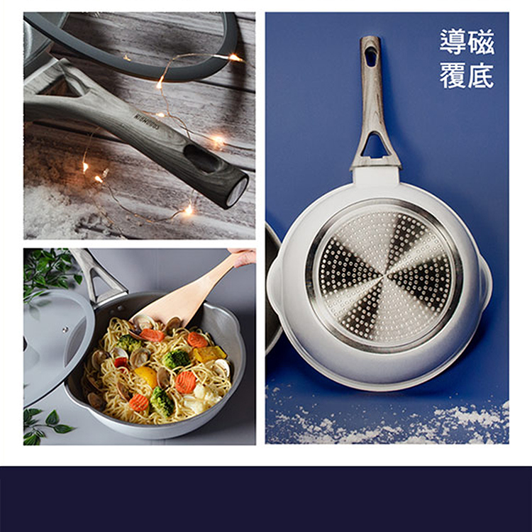 仿木柄紋設計時尚美觀,IH電磁爐對應設計,適用瓦斯爐、電爐、鹵素爐、紅外線爐
