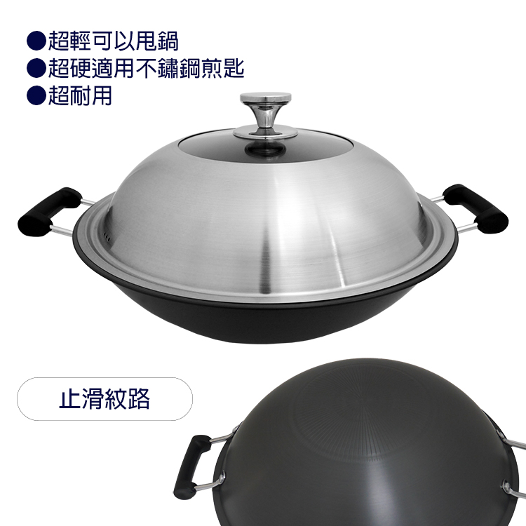 臺灣製造品質保証,流線手把握感極佳,雅緻巧思美觀大方,採用鈦合金最新科技材質,傳熱快且均勻,聚熱快,散熱慢,可用不鏽鋼煎鏟,煎煮食材只需少許油,只需中小火熱鍋熱油一分鐘,即可達到抗黏性及不沾效果,易清洗 ,少油煙,耐用,省油,省瓦斯,適用瓦斯爐、電爐、陶瓷爐、鹵素爐、不適用電磁爐。