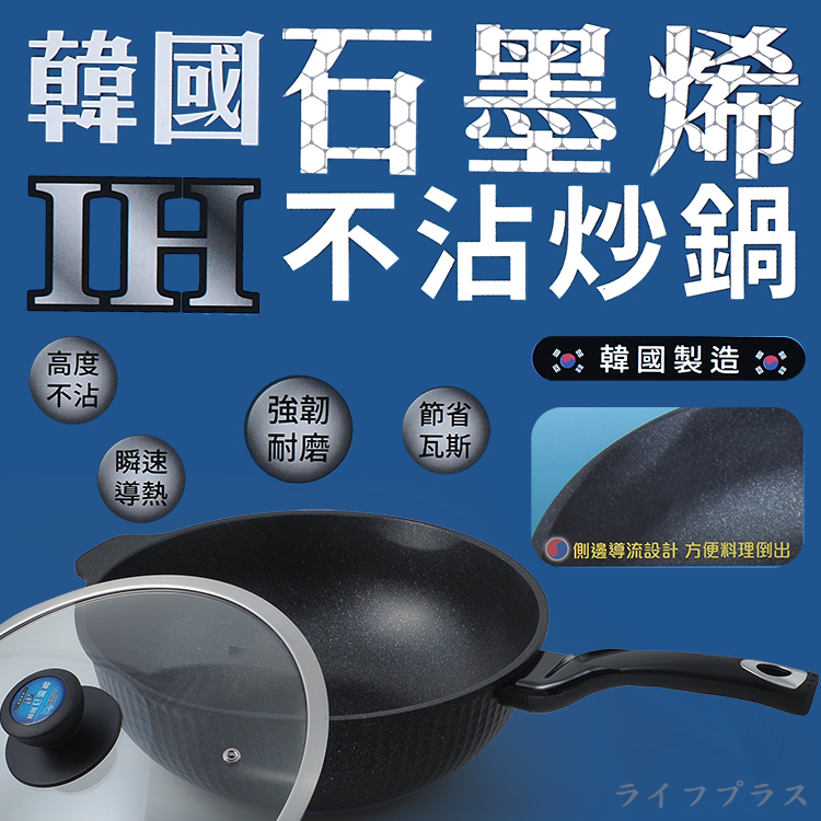 韓國製造品質安心,採用最新合金精工製作,採用石墨烯不沾塗層耐用不沾處理,導熱更均勻,煎煮食材只需少許油,達到不沾鍋身抗黏OK,不易粘黏食材,易清洗 ,傳熱快且均勻,省油,省瓦斯,料理食物好鍋具,超厚導磁適用IH電磁爐、瓦斯爐、電爐、紅外線爐、鹵素爐,不挑爐的好鍋。