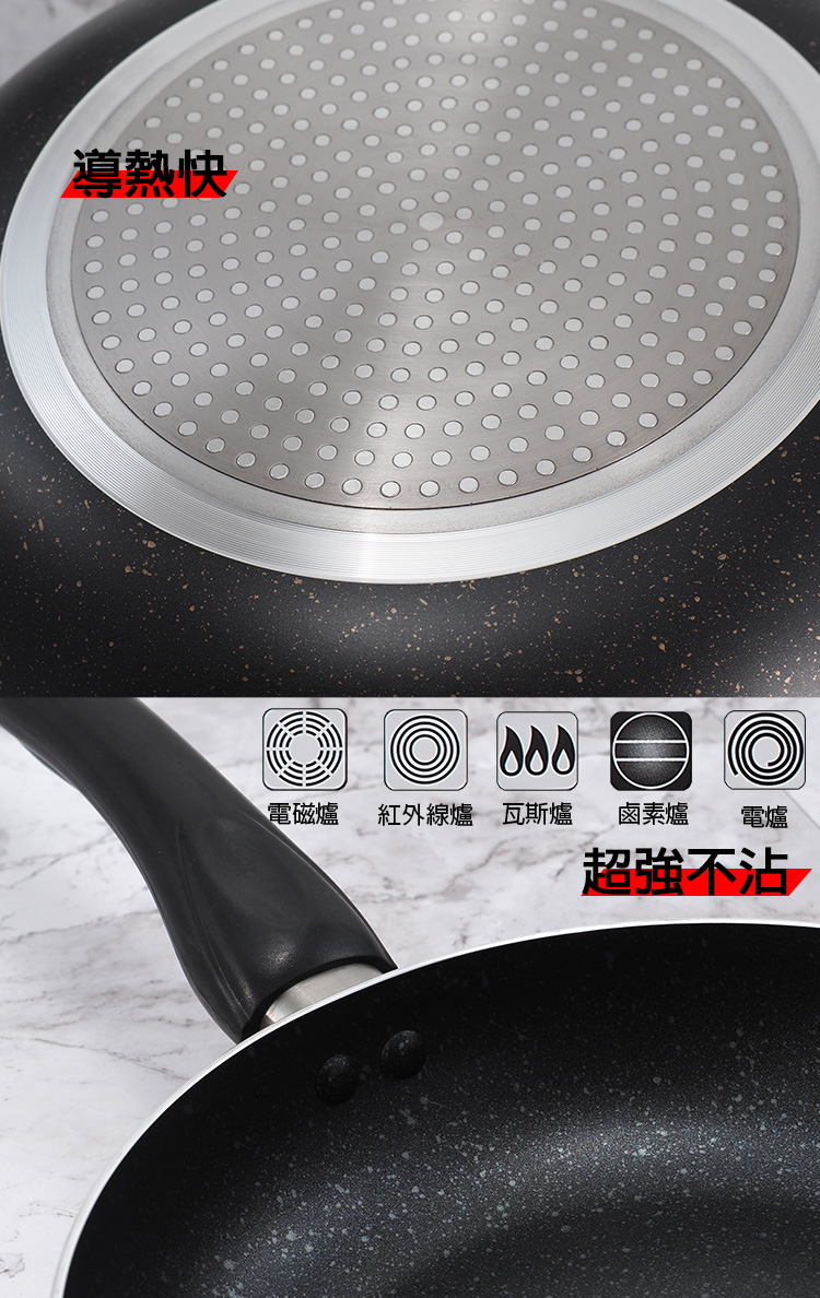法國時尚品牌精品品質,臺灣製造品質保証安心使用,採用合金精工製作鍋身硬度高,不沾易潔塗層,煎煮食材只需少許油,達到不沾效果,傳熱快且均勻,省油,省瓦斯,流線造型握感極佳,輕量設計操作輕鬆,料理食物好鍋具,適用IH電磁爐、瓦斯爐、電爐、鹵素爐、紅外線爐、電磁爐,輕鬆創造行動廚房。