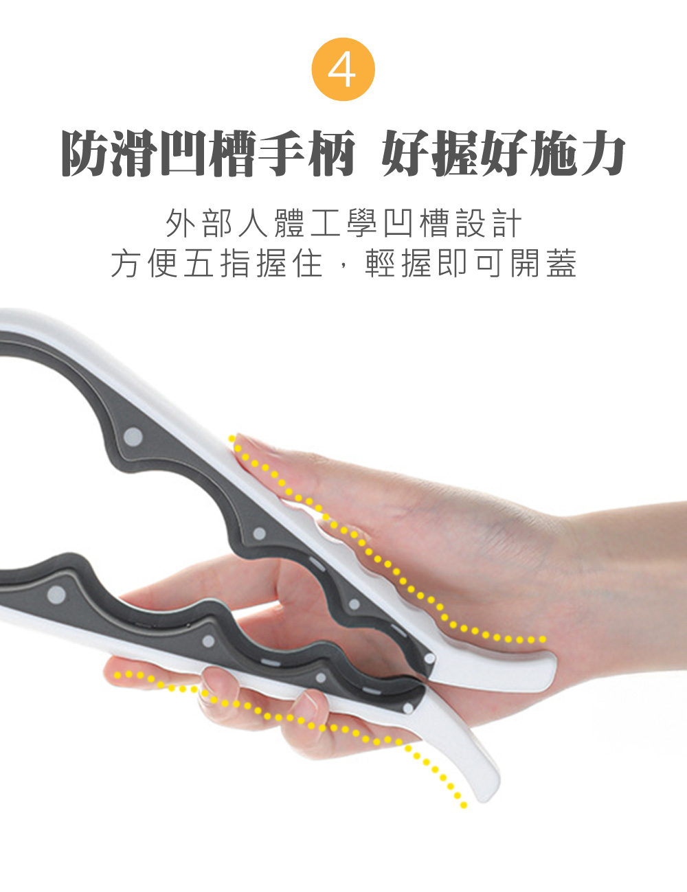 只要簡單夾住、輕輕一轉,再頑固的瓶蓋也能秒開!