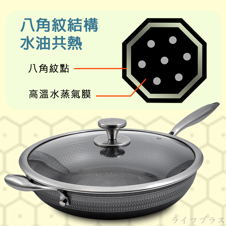 八角網紋結構不沾保護層,食用層採用頂級316不鏽鋼材質,適用不鏽鋼鏟
