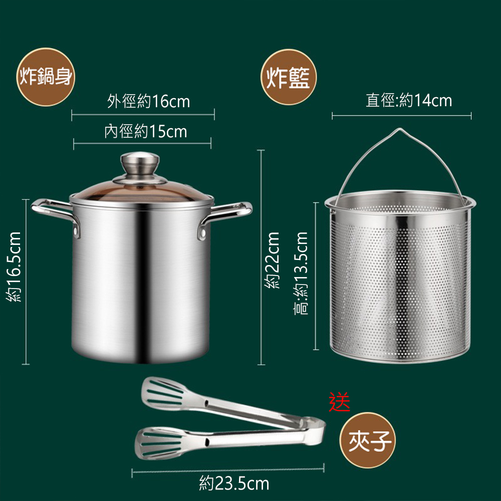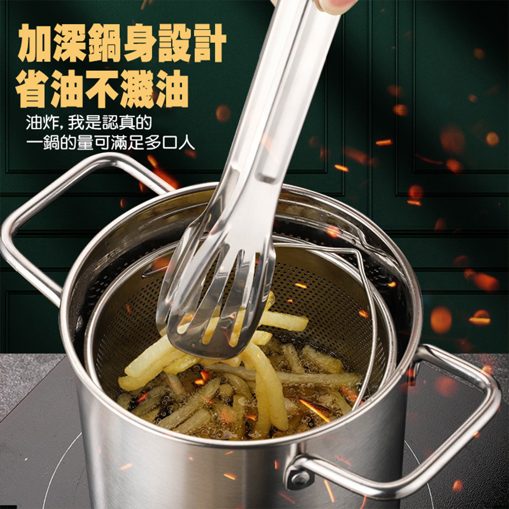 304不鏽鋼雙耳油炸鍋-附濾網+夾子