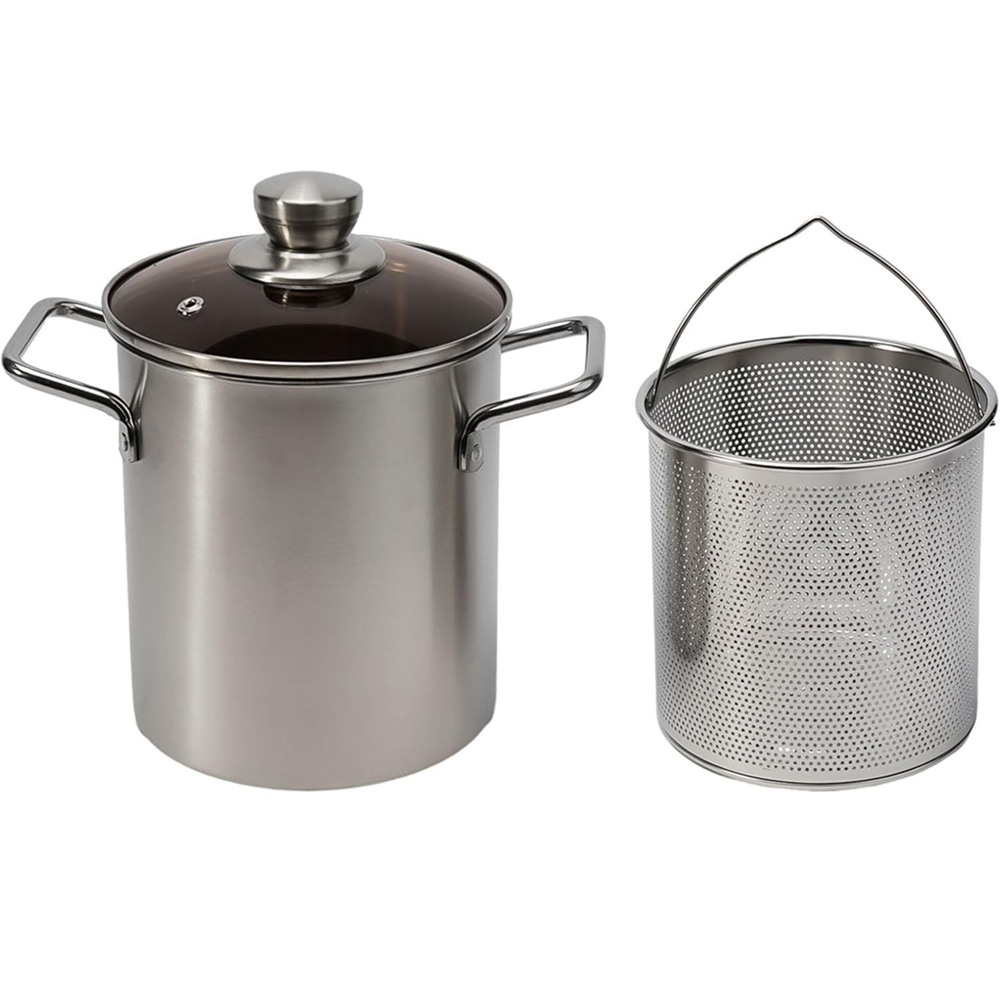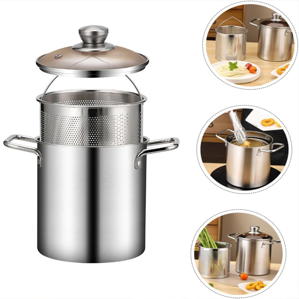 3L 304 Stainless Steel Deep Fryer with Double Handles, Includes Strainer and Clips, Deepened Straight-Cylinder Body