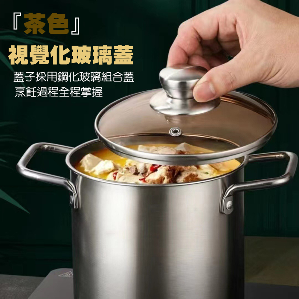 材質、鍋身-304不銹鋼、配件-201材質、鍋蓋-可視玻璃