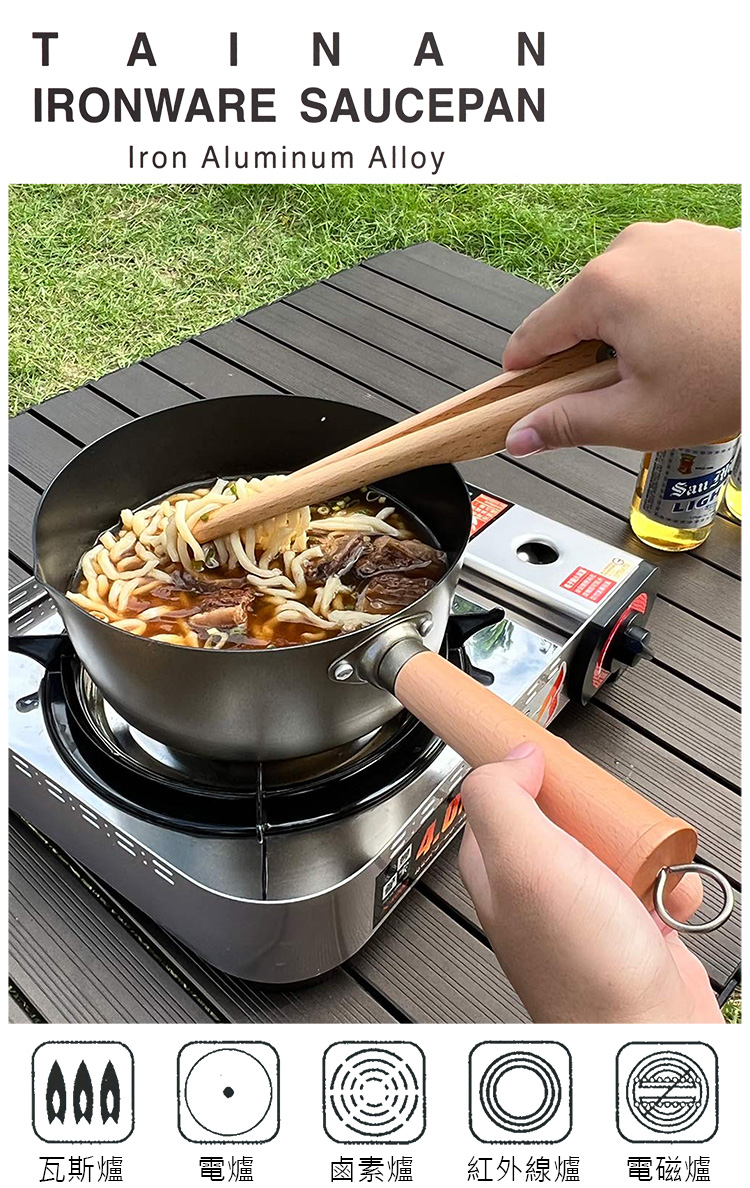 臺灣製造精品品質安心,低調奢華台南鐵器,通過SGS檢測使用安心,採用耐高溫不沾塗層,加強不沾效果不卡油垢,導熱效果佳,傳熱快且均勻,聚熱快,散熱慢,易清洗 ,握柄採用山毛櫸材質,質感溫潤時尚美觀,可拆卸式設計,攜帶方便,適用電磁爐、瓦斯爐、電爐、紅外線爐、鹵素爐。