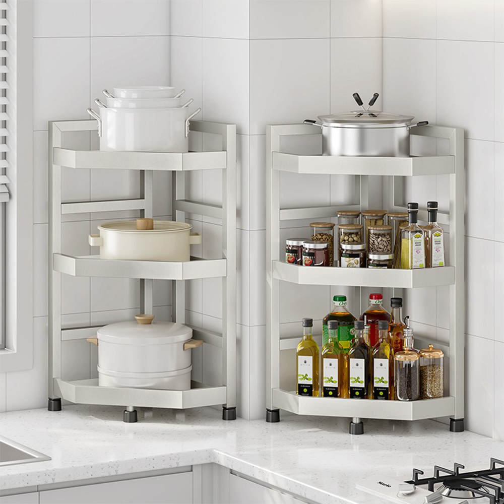 白色檯面不銹鋼轉角調味料置物架+筷子筒