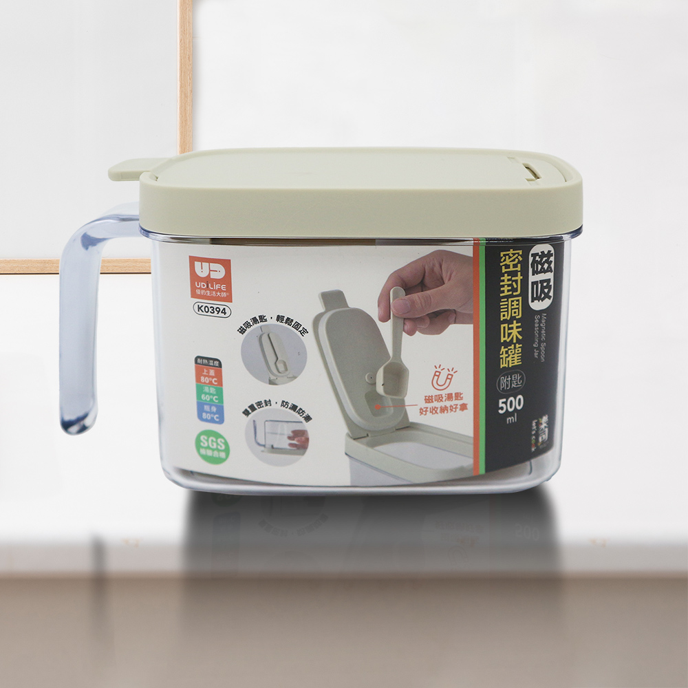 本產品通過SGS檢測合格,安心使用,密封按壓式使用設計,防止蟑螂螞蟻,獨特磁吸湯匙,輕鬆一吸,穩固不掉落,方便控制調味用量,罐身AS材質透明看的見,可分罐置放各式調味料。