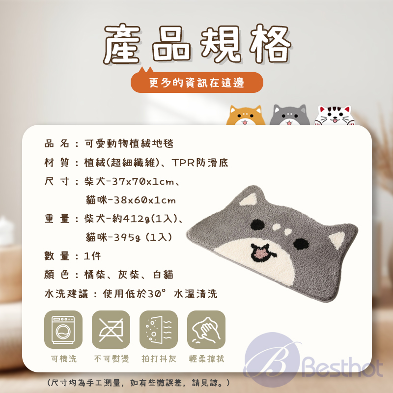 【Besthot】可愛動物植絨地毯