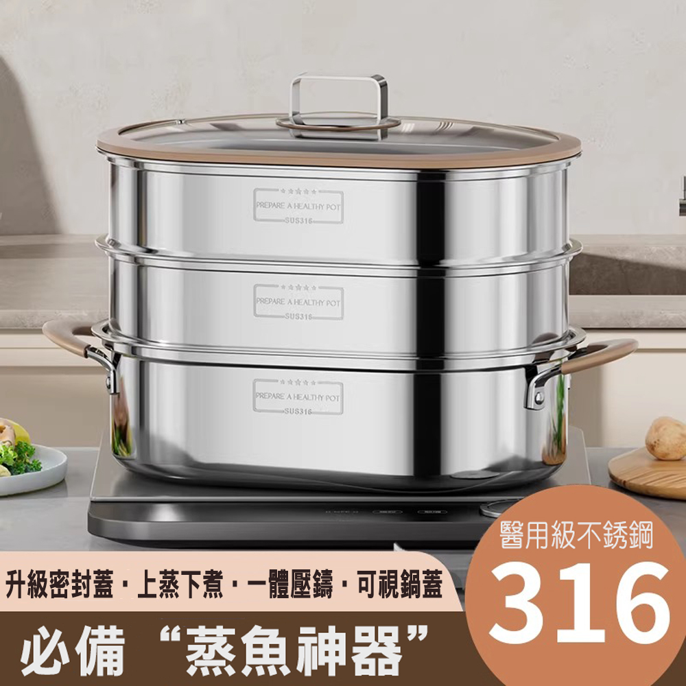 316不鏽鋼材質–堅固耐用,耐高溫、易清潔、不生鏽,無論是蒸魚鍋具、蒸氣鍋或不鏽鋼鍋
