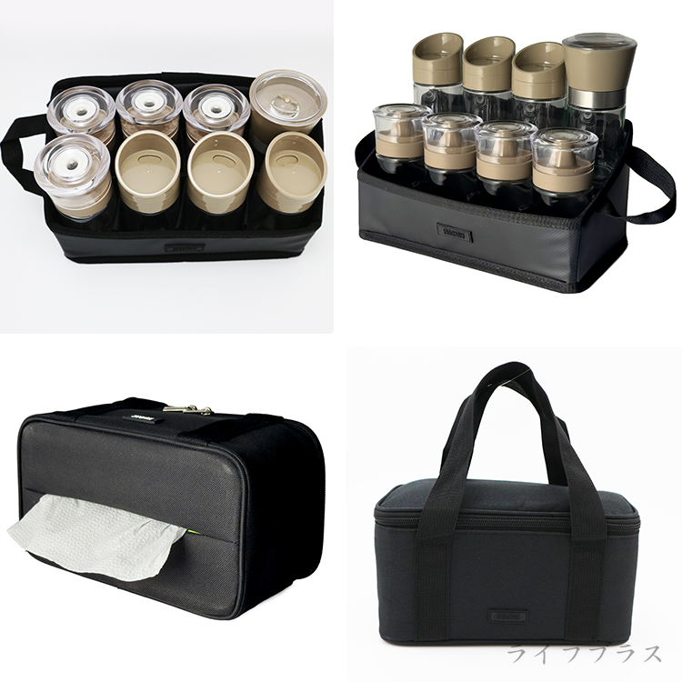 多用途使用設計,玻璃材質罐身易辨識內容物,適合裝盛各式調味品,可放各式調味料,分格內盒瓶身放置有序,前後排高低差方便取拿,一袋搞定,附收納提袋、調罐貼紙方便辨識,居家、露營、旅行使用攜帶方便。