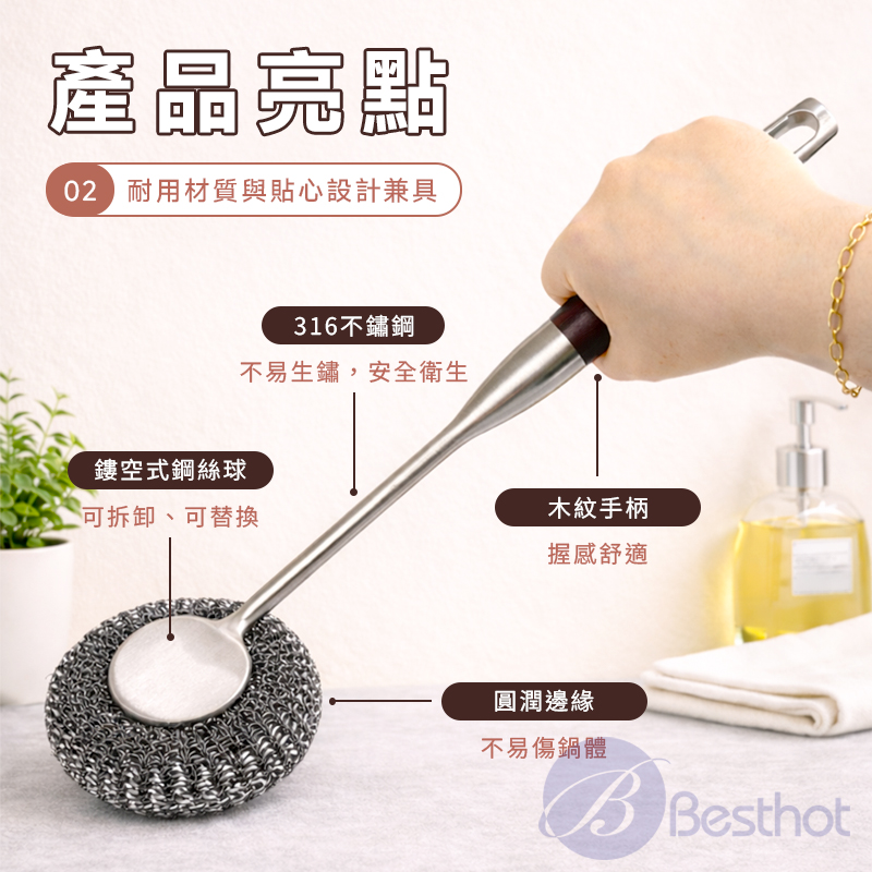 ✔️316不鏽鋼刷絲設計 強力去污 輕鬆刷除頑固油垢