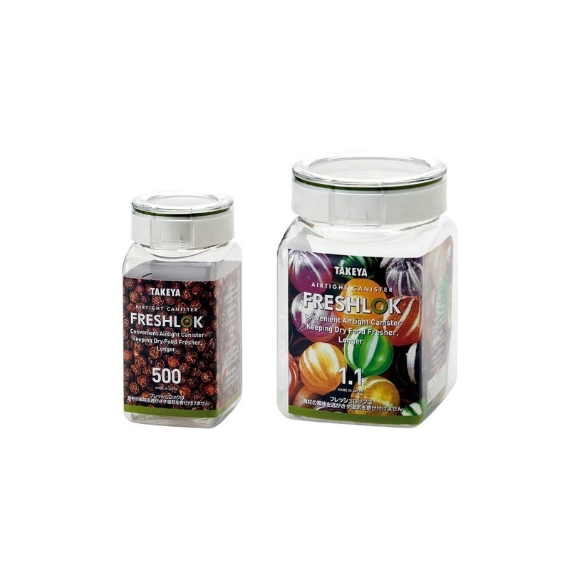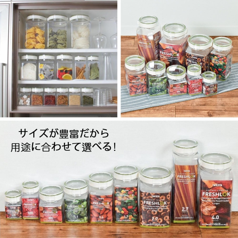 TAKEYA Airtight Food Storage Containers Made in Japan, Clear Square Canisters 1.1L / 500ml / 300ml, Leakproof Kitchen Storage Jars for Dry Food, Spices, Pantry Organization