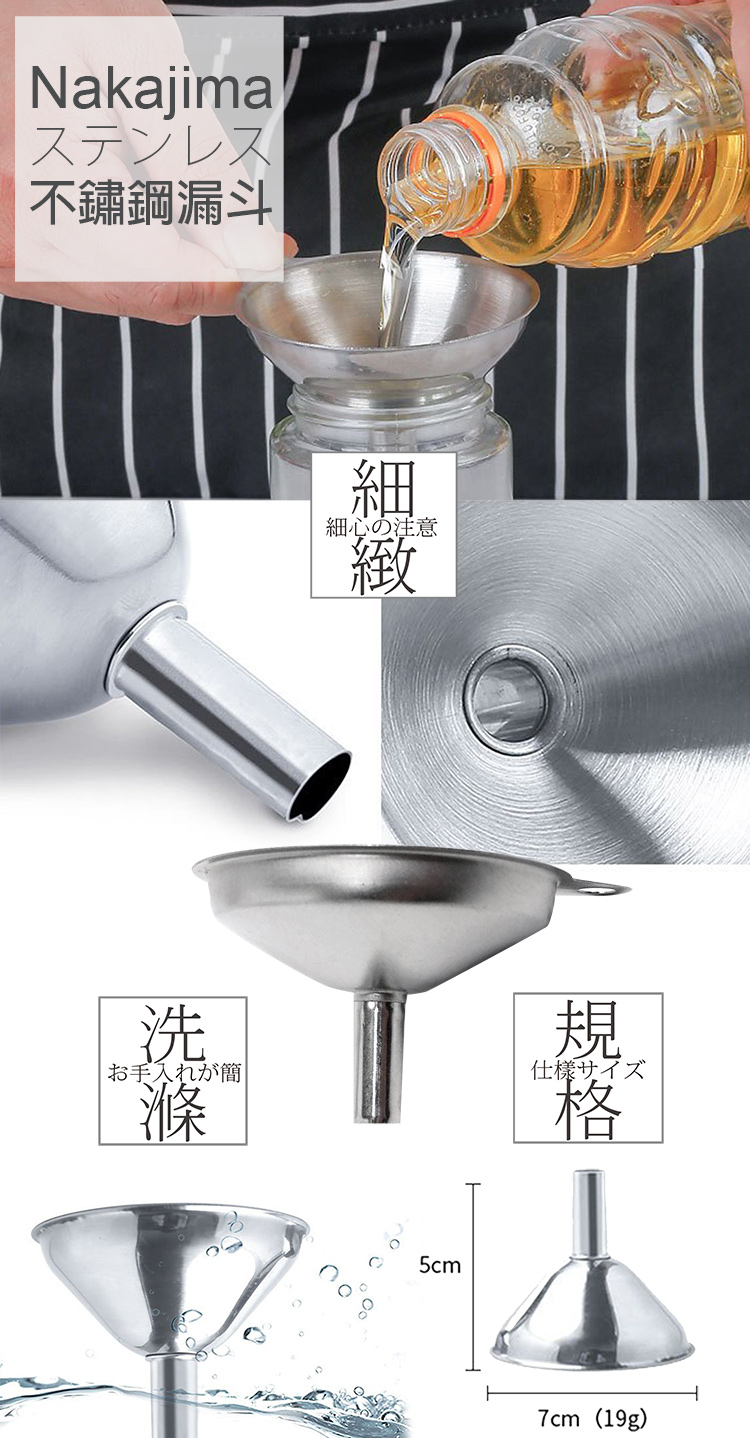 日本品牌品質安心,小孔徑可依瓶口大小選擇使用,適合分裝多種調味品,採用不鏽鋼材質,可重複使用,更加環保 ,好沖好洗不沾污。