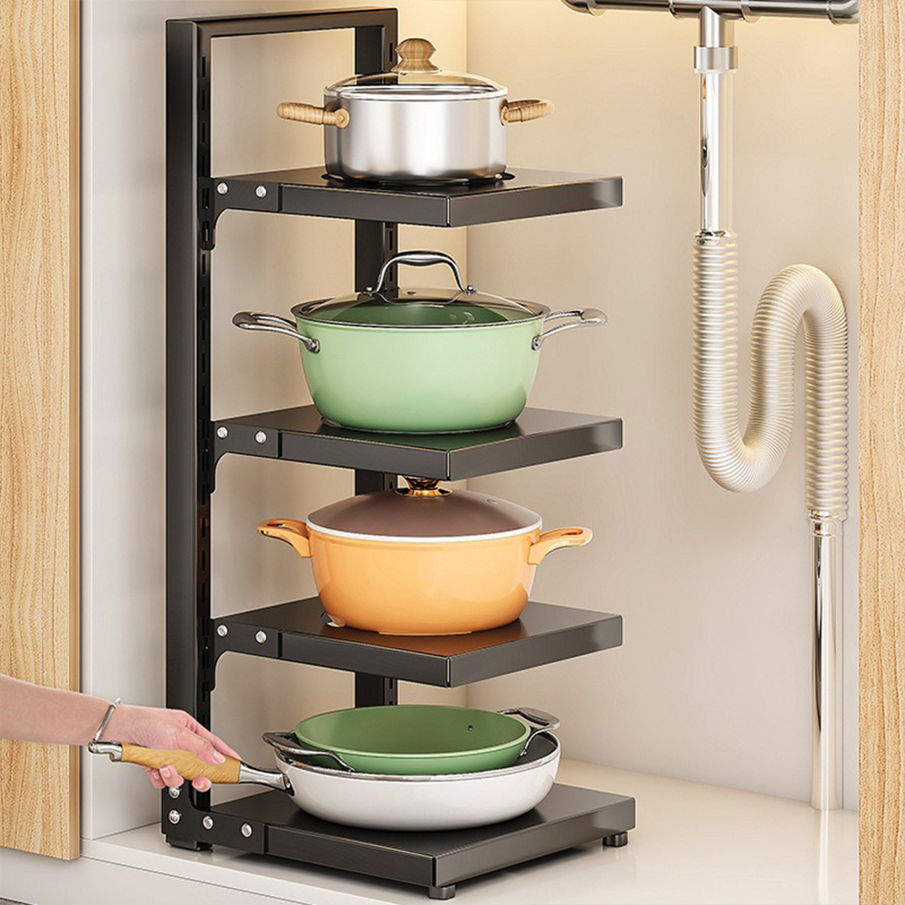 可調節設計,廚房鍋具置物架,大容量一架收納