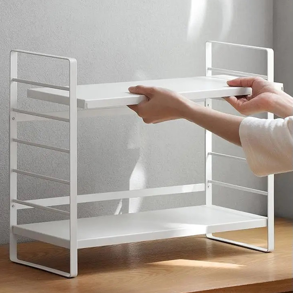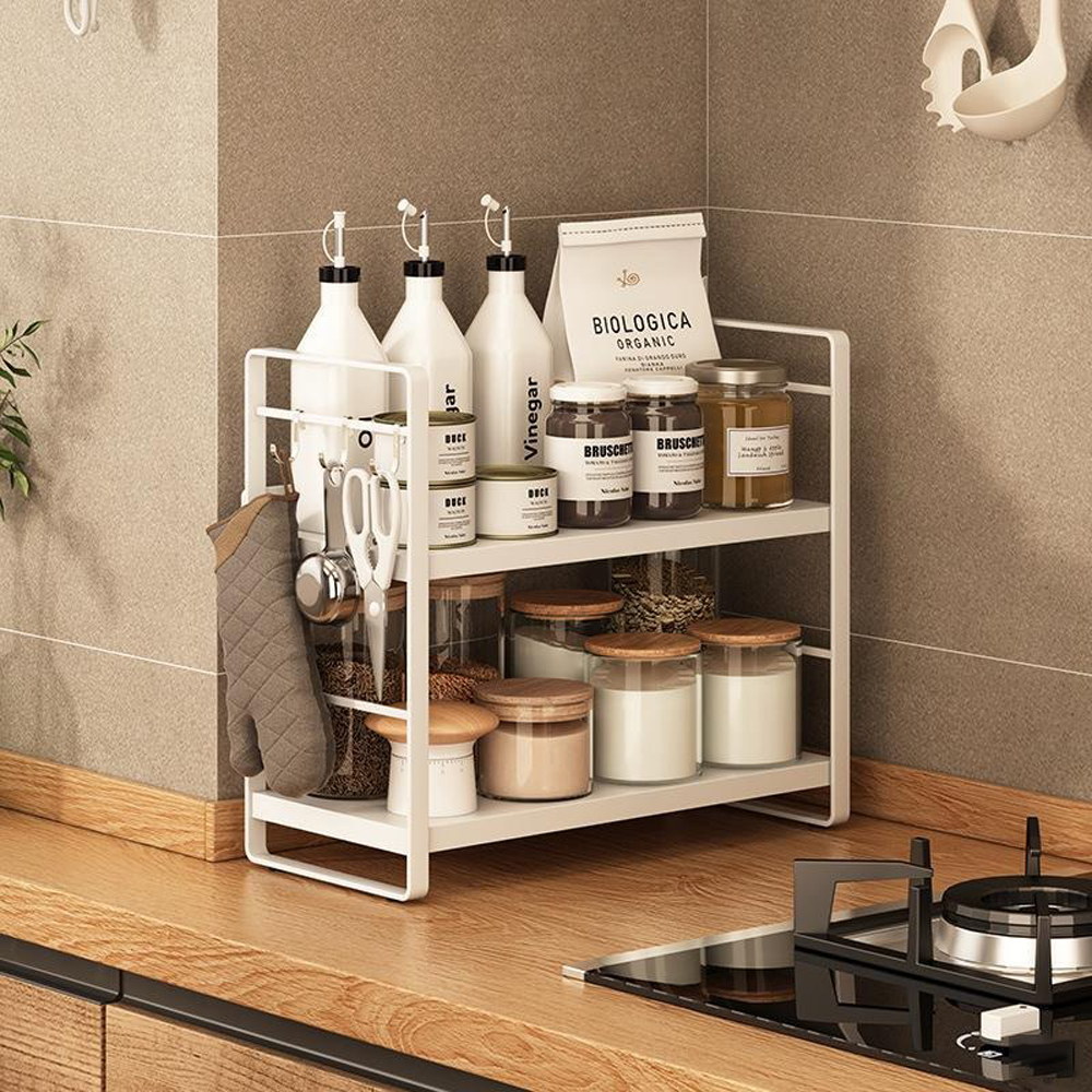 Adjustable, narrow countertop kitchen spice rack for oil, salt, soy sauce, and vinegar bottles; tiered rack for bottles and jars; tabletop storage; no installation required.