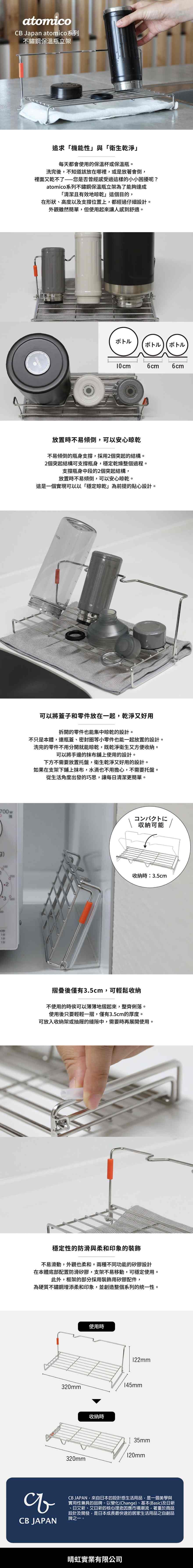 材質:[本體]不鏽鋼、[止滑墊、裝飾配件]矽膠尺寸:W320×D145×H122mm收納後尺寸:W320×D120×H35mm重量:265g產地:日本授權中國生產
