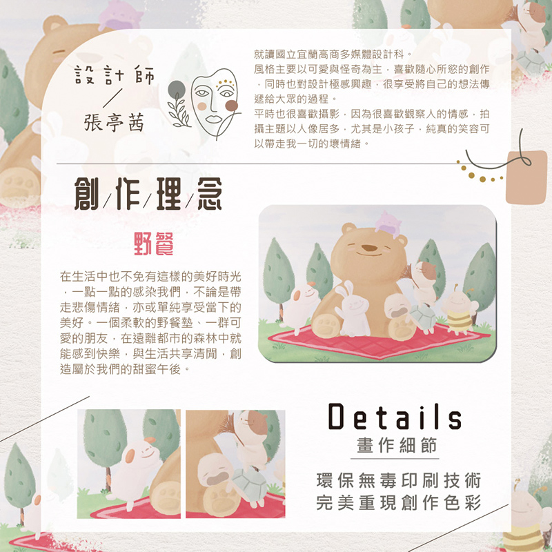 【Monster】 Soft Diatomaceous Earth Absorbent Mat – NewGen Designer Series (60x40cm) – Picnic Time