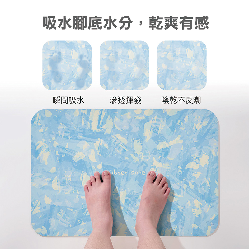 【Monster】 Soft Diatomaceous Earth Printed Absorbent Mat – Misty Sakura Tales (60x40cm) – Glacier Blue