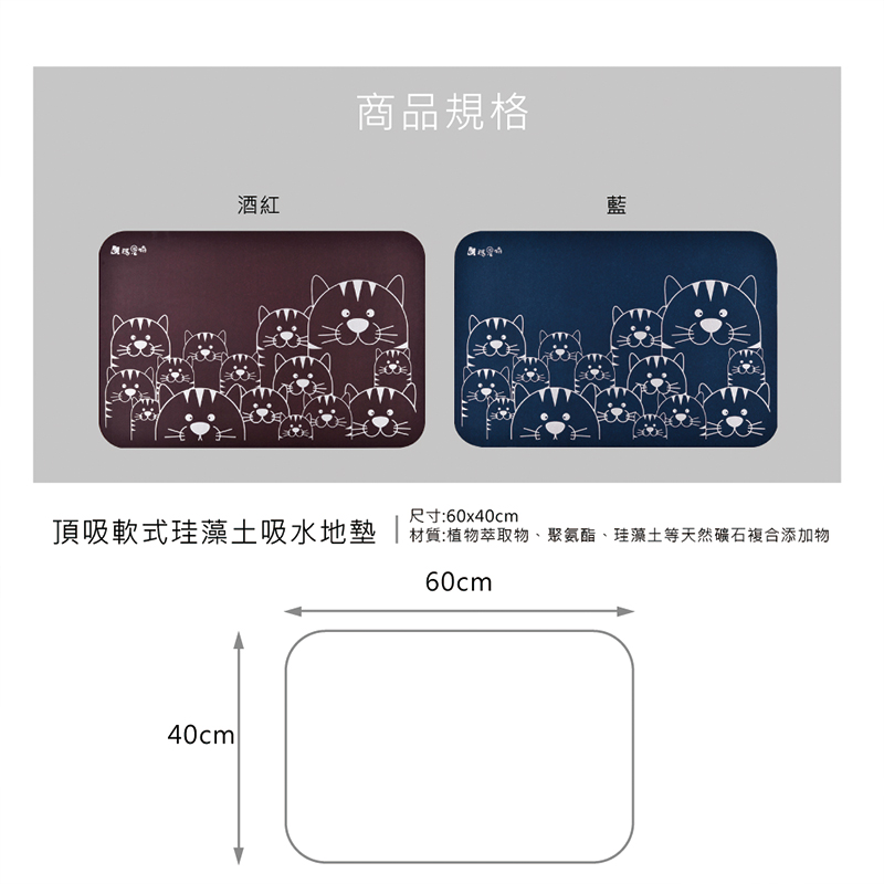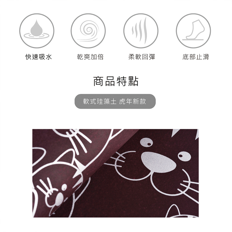 【Monster】 Soft Diatomaceous Earth Absorbent Mat – Tiger Gaze Series (60x40cm) – Wine Red