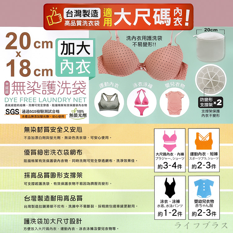 台灣製造不易不脫線不開口,通過SGS檢驗合格無螢光劑 無染材質使用安全又安心,大尺碼使用立體框架保護衣物 防止衣物損壞變形,防止衣物糾結傷腦筋