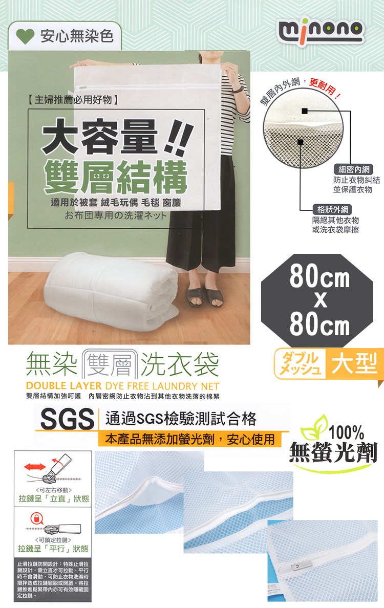 台灣製造通過SGS檢驗合格,雙層內外網結構更耐用,不易不脫線不開口,無染材質無螢光劑使用安全又安心,防止衣物損壞變形保護衣物,防止衣物糾結不傷衣物,毛毯、浴巾、枕頭套超大物用分類洗衣輕鬆曬衣服,不用再為了打結衣物而傷腦筋,使用方便,洗衣好幫手。