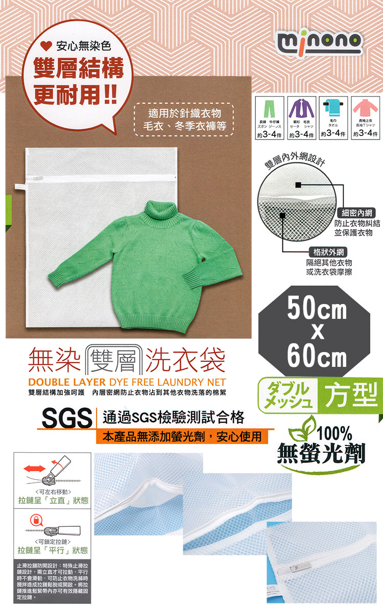 台灣製造通過SGS檢驗合格,雙層內外網結構更耐用,不易不脫線不開口,無染材質無螢光劑使用安全又安心,防止衣物損壞變形保護衣物,防止衣物糾結不傷衣物,浴巾、枕頭套等大物用分類洗衣輕鬆曬衣服,不用再為了打結衣物而傷腦筋,使用方便,洗衣好幫手。