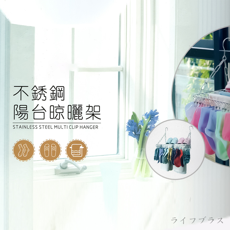 一般市售折疊衣襪架,在長期曝露強烈陽光下便會產生脆化裂開不堪使用或是夾子損壞,整組就必須換掉,不鏽鋼陽台晾曬架使用不鏽鋼材質,夾子耐用,本產品在使用時,購買一組可扺市售塑膠衣襪架多組,堅固耐用,不易損傷。