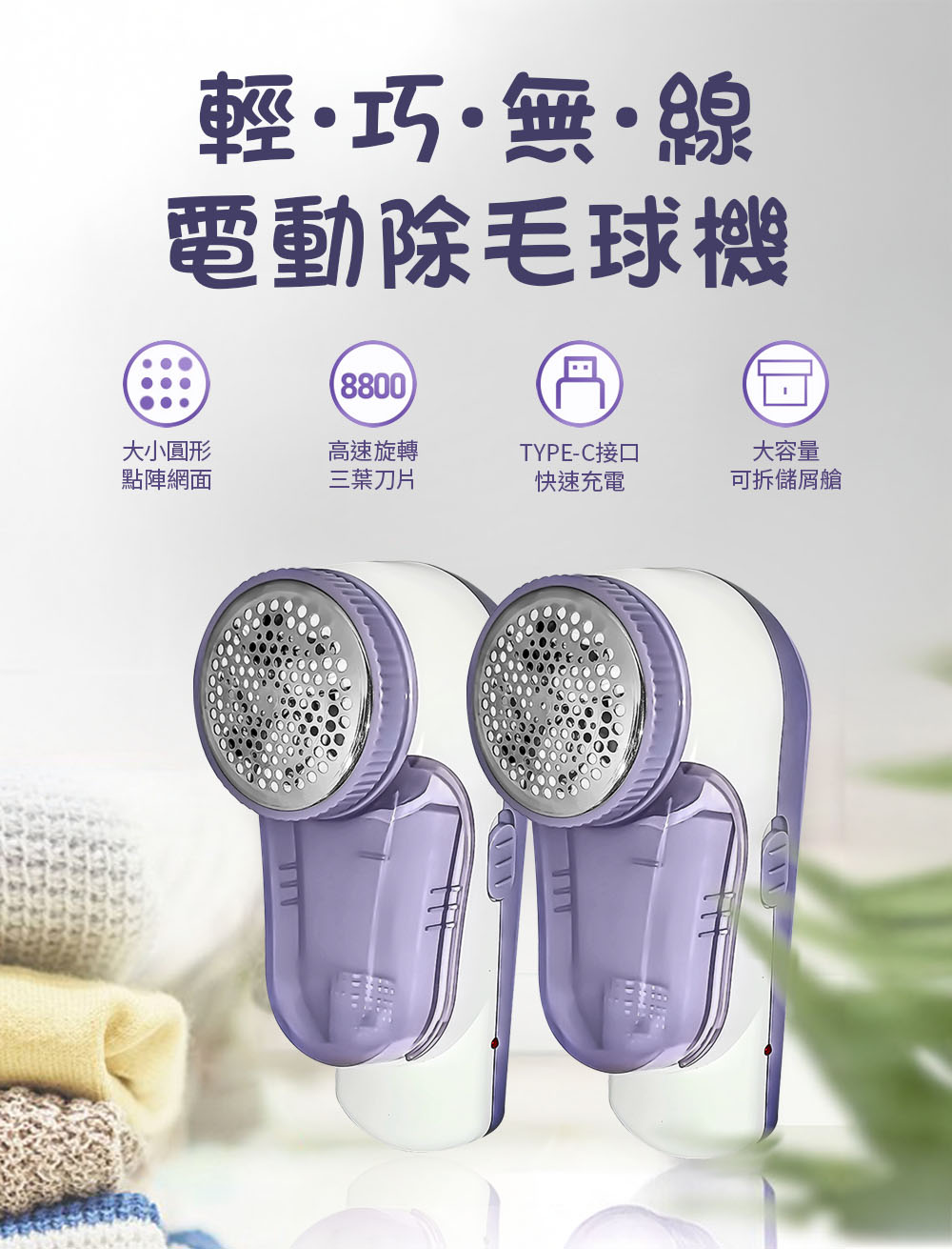 🧶 告別毛球困擾,讓您的衣物重現光彩!✨這款充電式無線除毛球機是您的時尚守護者。8800 高轉速輕鬆剔除頑固毛球,大容量廢毛球艙減少清理次數 🗑️。外出約會突發毛球危機?👚 別慌!輕巧機身隨身攜帶,隨時隨地為您解救珍愛衣物。無線設計讓您在✈️旅行、辦公室或🚗通勤途中都能優雅應對。可替換刀片確保長期高效,充電式設計環保又方便。從🧥柔軟毛衣到👔精緻西裝,一機搞定各種面料 。讓這款神器成為您的時尚百寶箱,隨時保持完美儀容!👌【產品信息】品名:電動除毛球機材質:塑膠、精鋼、電子零件重量:約185g尺寸:6.5*8.3*16.3cm配件:清潔刷、充電線
