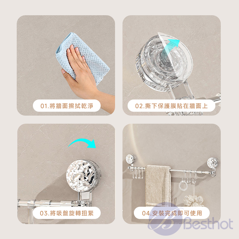 【Besthot】 多功能伸縮吸盤掛稈