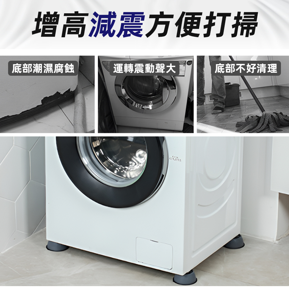 這款專為洗衣機設計的減震增高墊,特別適合飽受噪音與位移困擾的家庭,能有效吸收震動、穩固機身,同時墊高底部方便清潔,讓洗衣不再是件擾人的事。