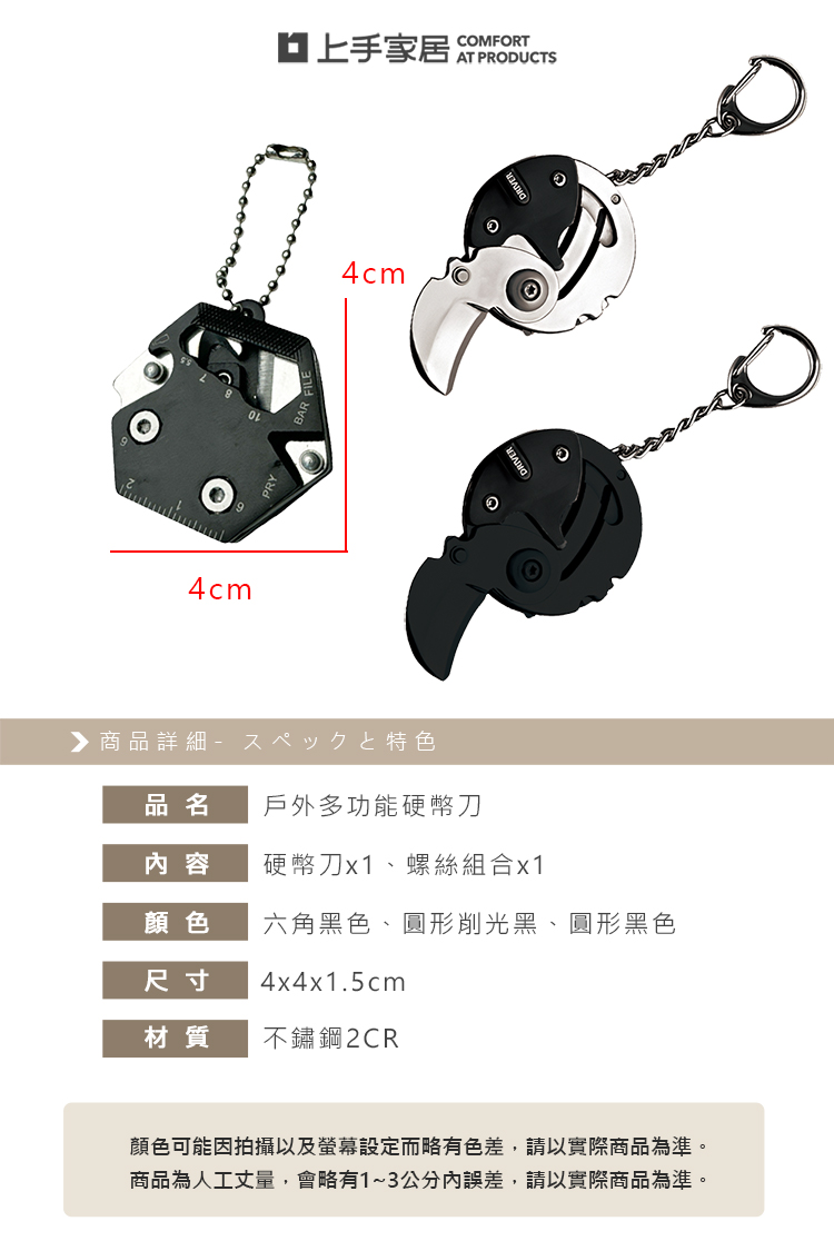 這款隨身硬幣工具刀,特別為喜歡戶外活動或講求效率的你而設計,能完美解決臨時找不到工具的窘境。它擁有硬幣般的精巧體積,結合鋒利小刀與多種螺絲起子,可輕鬆掛在鑰匙圈或背包上,無論是露營探險、日常拆包裹或簡易維修,都能隨時派上用場。