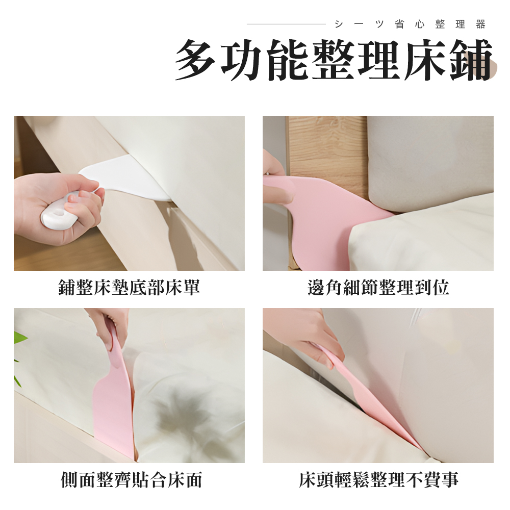 這款床單整理器特別為了解決鋪床困擾而設計,讓您無須移動床墊,只要順著縫隙滑入,就能輕鬆將床單塞得平整又牢固,告別整理床鋪時的腰酸背痛,讓做家事變得更有效率。