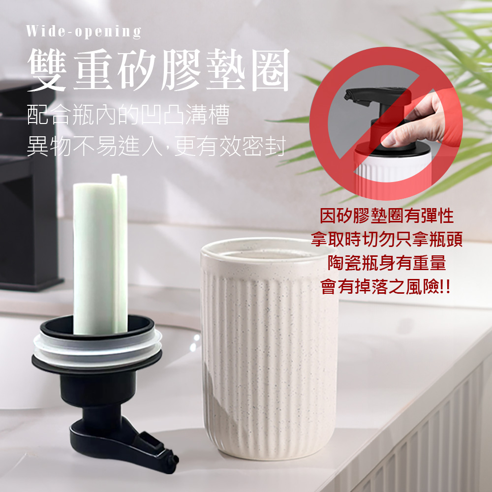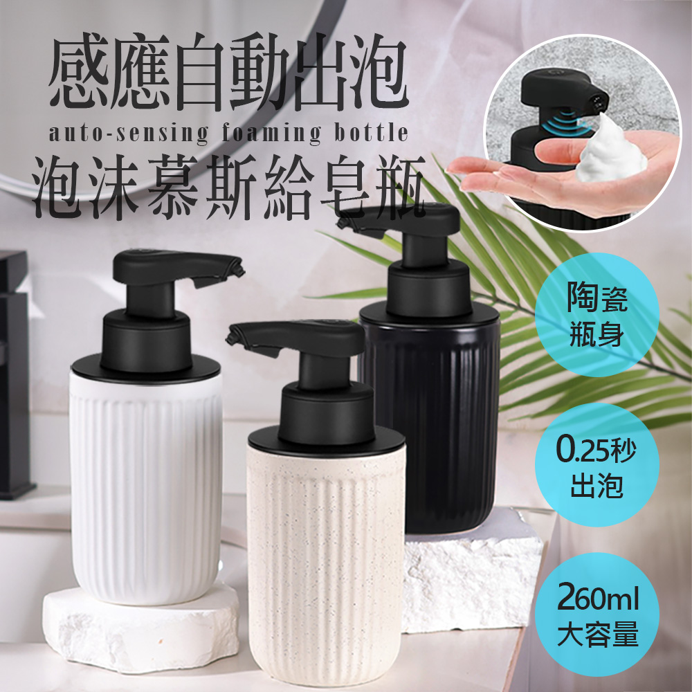 戶外陽光熹微,您輕輕揮手這款自動感應泡沫慕斯瓶就為您準備好了🧼豐盈柔軟的泡沫。無論是沐浴時的放鬆時刻 🛁,還是🚿洗手檯前的快速清潔 ,✨它都是您的得力助手。陶瓷瓶身不僅美觀,觸感更是絲滑細膩🌅 為您的浴室增添一份高雅品味。🏺從濃稠的沐浴乳到清爽的洗手液,它都能給你完美細膩的泡泡。讓每一次的清潔都成為一種享受,為您的日常生活增添一抹優雅與便利!🌿【產品訊息】名稱:自動感應泡沫慕斯給皂瓶材質:瓶蓋-PC 瓶身-陶瓷尺寸:7*10*17.5cm杯壁:厚度0.5cm重量:470g容量:260ml